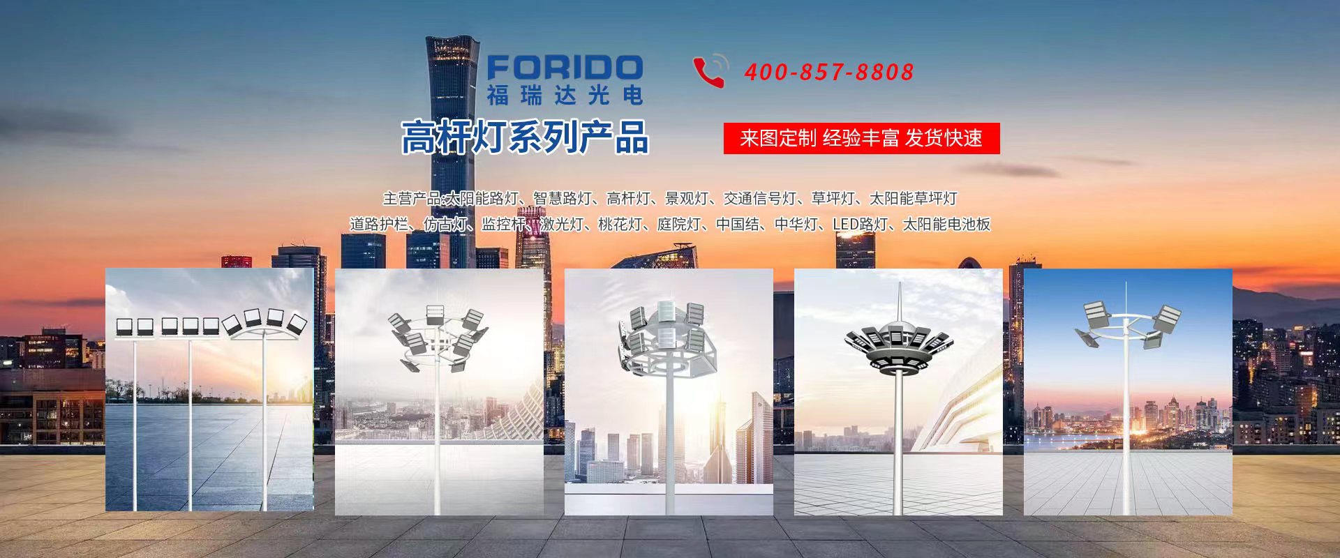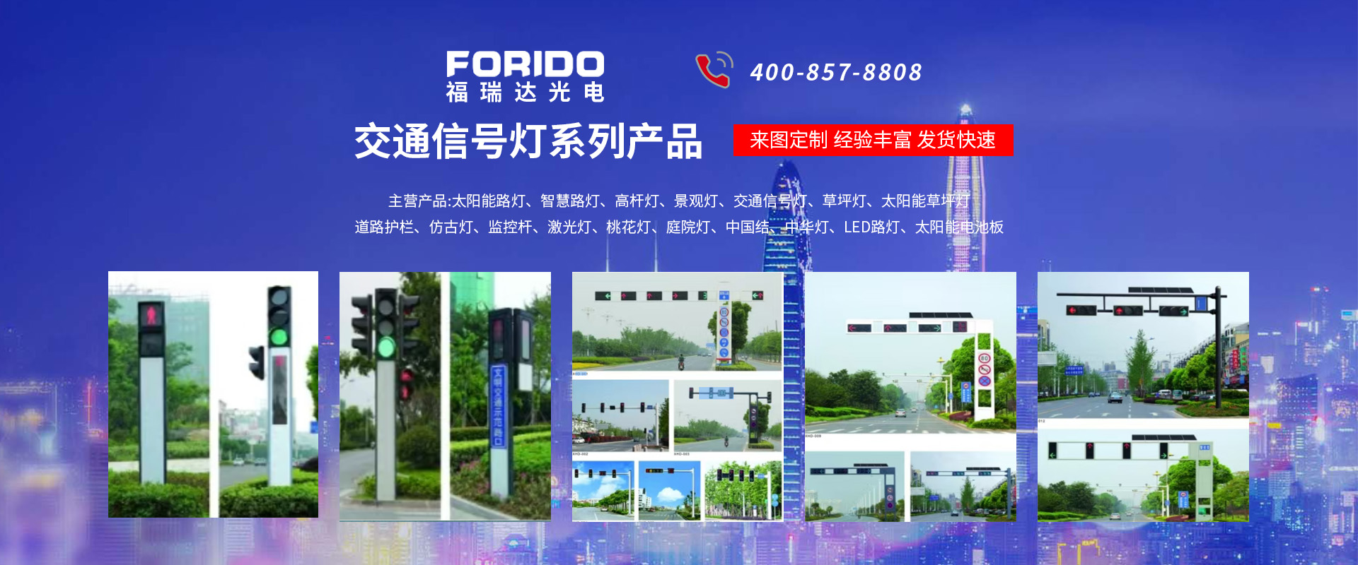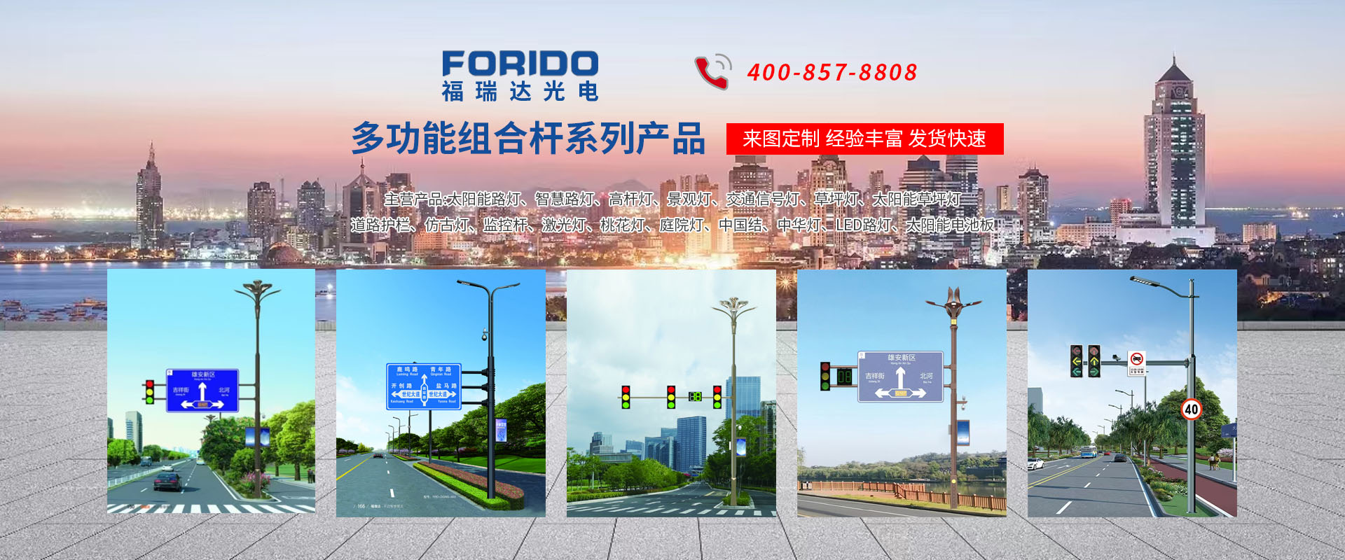 揚(yáng)州福瑞達(dá)光電科技有限公司位于淮左名都?xì)v史文化名城、中國(guó)路燈制造基地?fù)P州市北郊菱塘工業(yè)園,公司占地面積76000平方米,注冊(cè)資金10518萬(wàn)元,擁有高級(jí)技術(shù)嫻熟的員工280多人,擁有大型折彎?rùn)C(jī)、激光切割、數(shù)控注塑機(jī)、壓鑄機(jī)、自動(dòng)埋弧焊、氣焊、彩色粉末靜電噴塑等大型自動(dòng)化設(shè)備,我公司是一家集設(shè)計(jì)、研發(fā)、生產(chǎn)、銷(xiāo)售、施工安裝服務(wù)為一體的戶外交通照明產(chǎn)品制造商,主要生產(chǎn)智慧路燈、太陽(yáng)能路燈、LED路燈、高桿燈、景觀燈、交通信號(hào)燈、交通標(biāo)志牌、通信鐵塔、路跨鋼結(jié)構(gòu)、公交站臺(tái)、太陽(yáng)能光伏組件、景點(diǎn)亮化、樓宇亮化工程的設(shè)計(jì)施工等。公司秉承開(kāi)拓創(chuàng)新、銳意進(jìn)取、精誠(chéng)服務(wù)的企業(yè)精神,堅(jiān)持以“誠(chéng)信為本、技術(shù)為先、服務(wù)是金”的合作理念,我們憑借先進(jìn)的制造工藝、優(yōu)質(zhì)的產(chǎn)品質(zhì)量、合理的市場(chǎng)價(jià)格和完善的售后服務(wù)贏得了廣闊的市場(chǎng)和客戶的信賴?! ∥夜疽淹ㄟ^(guò)ISO9001質(zhì)量體系認(rèn)證、ISO14001環(huán)境管理體認(rèn)證,CQC產(chǎn)品認(rèn)證,中國(guó)節(jié)能產(chǎn)品認(rèn)證,通過(guò)“CCC”強(qiáng)制性產(chǎn)品認(rèn)證,具有市政總承包,照明,交安,設(shè)計(jì)等資質(zhì)···